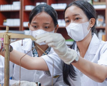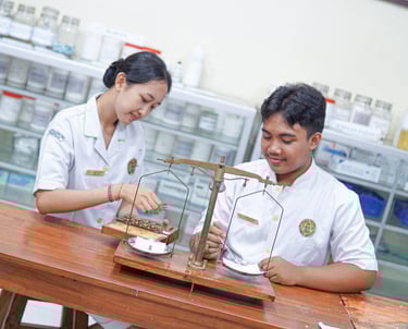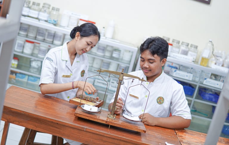 Jurusan Farmasi dirancang untuk membekali siswa dengan pengetahuan mendalam tentang obat-obatan, kesehatan, dan pelayanan farmasi yang sesuai standar industri. Pembelajaran berpusat pada murid, menekankan pada pembentukan karakter, etika profesi, serta keterampilan teknis yang dibutuhkan di dunia kerja. Dengan dukungan laboratorium lengkap dan praktik tambahan di luar jam reguler, siswa mendapatkan pengalaman langsung dalam meracik, mengelola, dan memahami fungsi obat secara profesional.